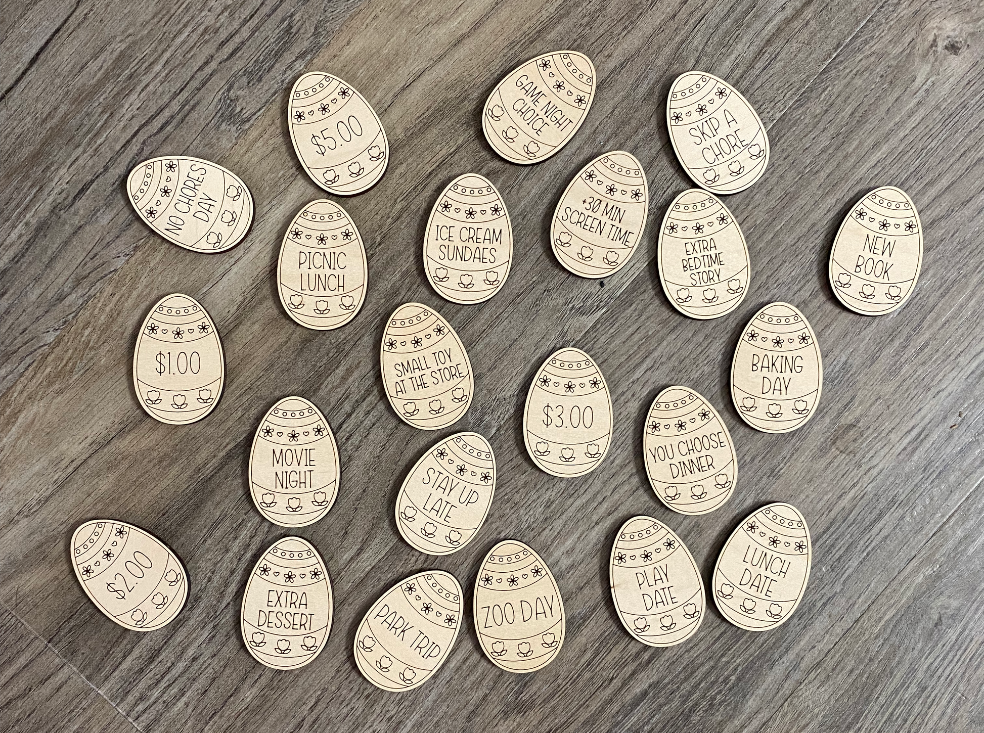 Each set includes 22 tokens with various rewards engraved, and 2 blank tokens to write in your own rewards!